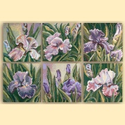 В серии: Чехол 'Розово-сиреневые ирисы' размер: 40х40 см, комплект салфеток 'Розово-сиреневые ирисы', картины в багете 'Розовый ирис' и 'Сиреневый ирис'